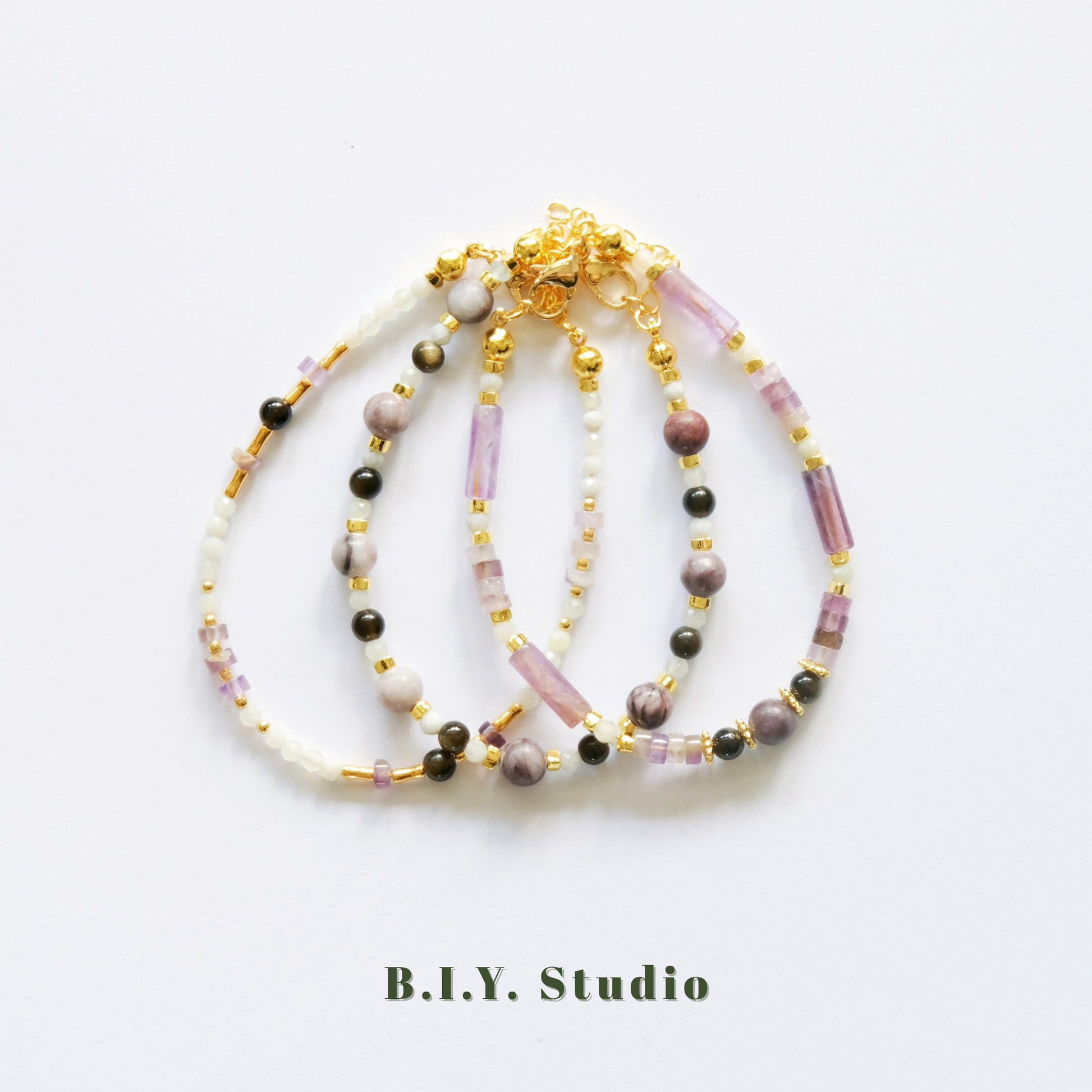 Materials: Amethyst, Gold Obsidian, Xiuyan Jade, Charoite, 18K Gold-plated Accessories
