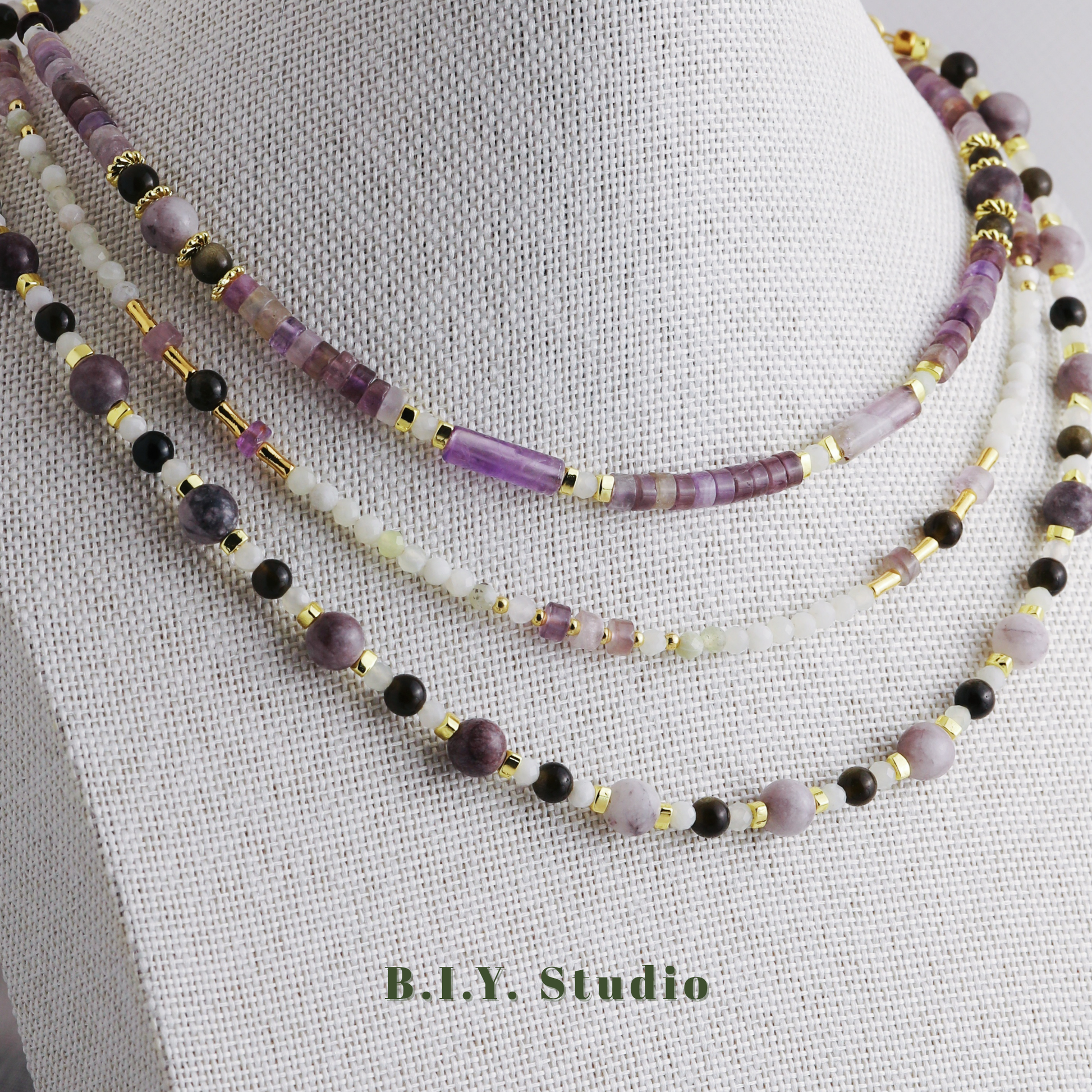 Materials: Amethyst, Gold Obsidian, Xiuyan Jade, Charoite, 18K Gold-plated Accessories