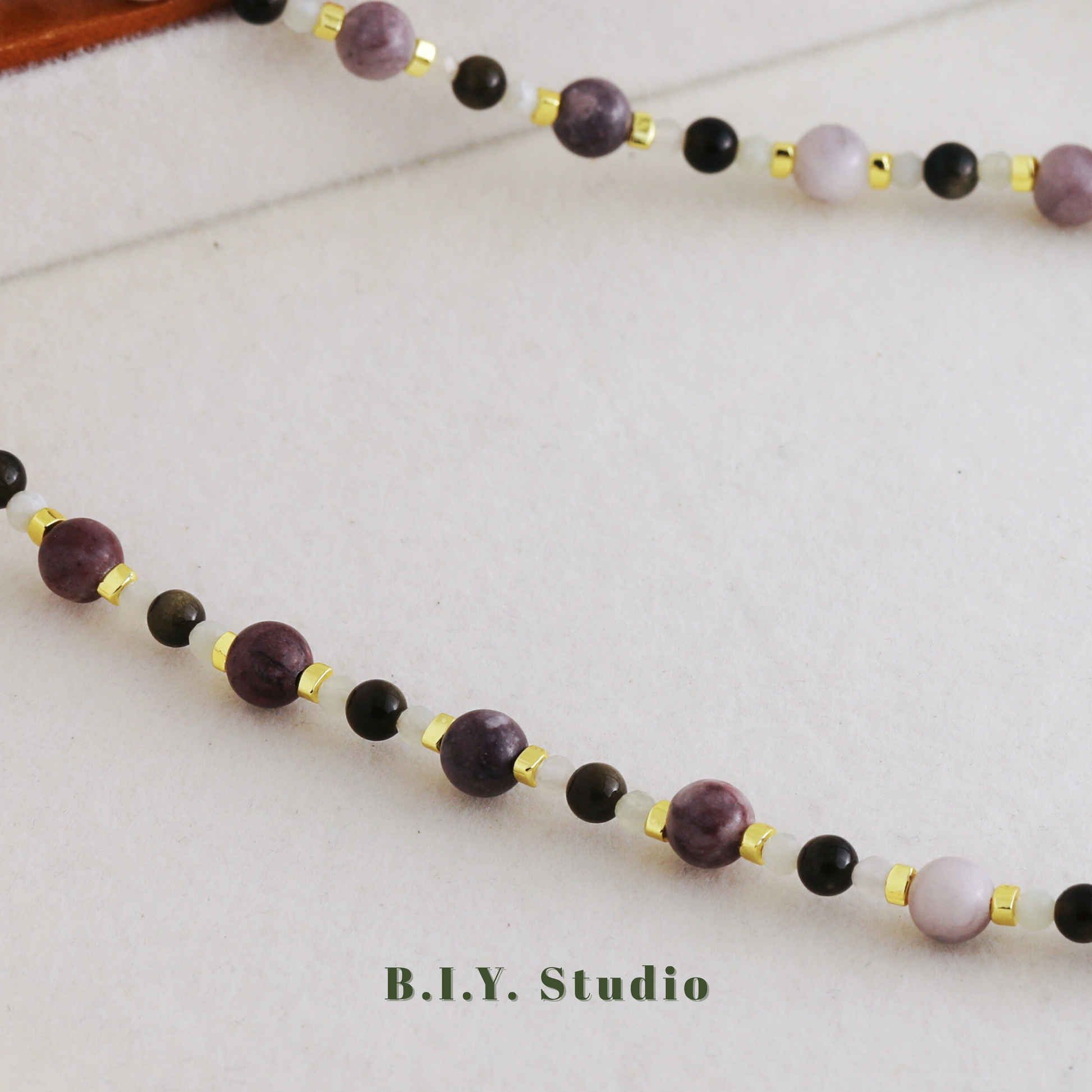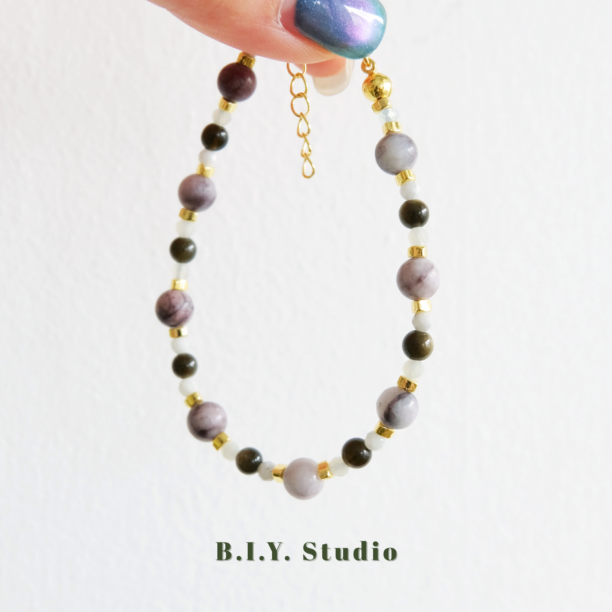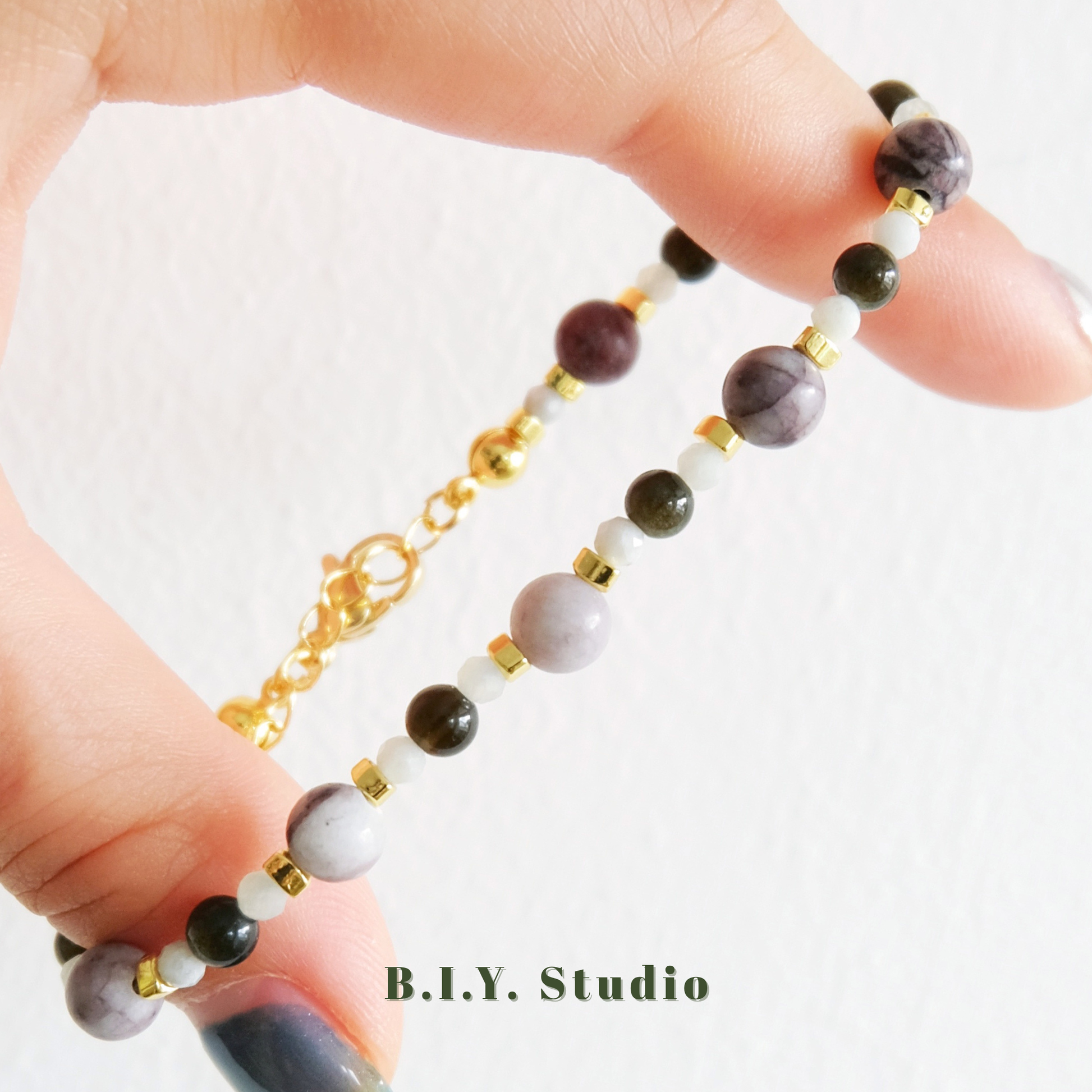 Materials: Gold Obsidian, Xiuyan Jade, Charoite, 18K Gold-plated Accessories