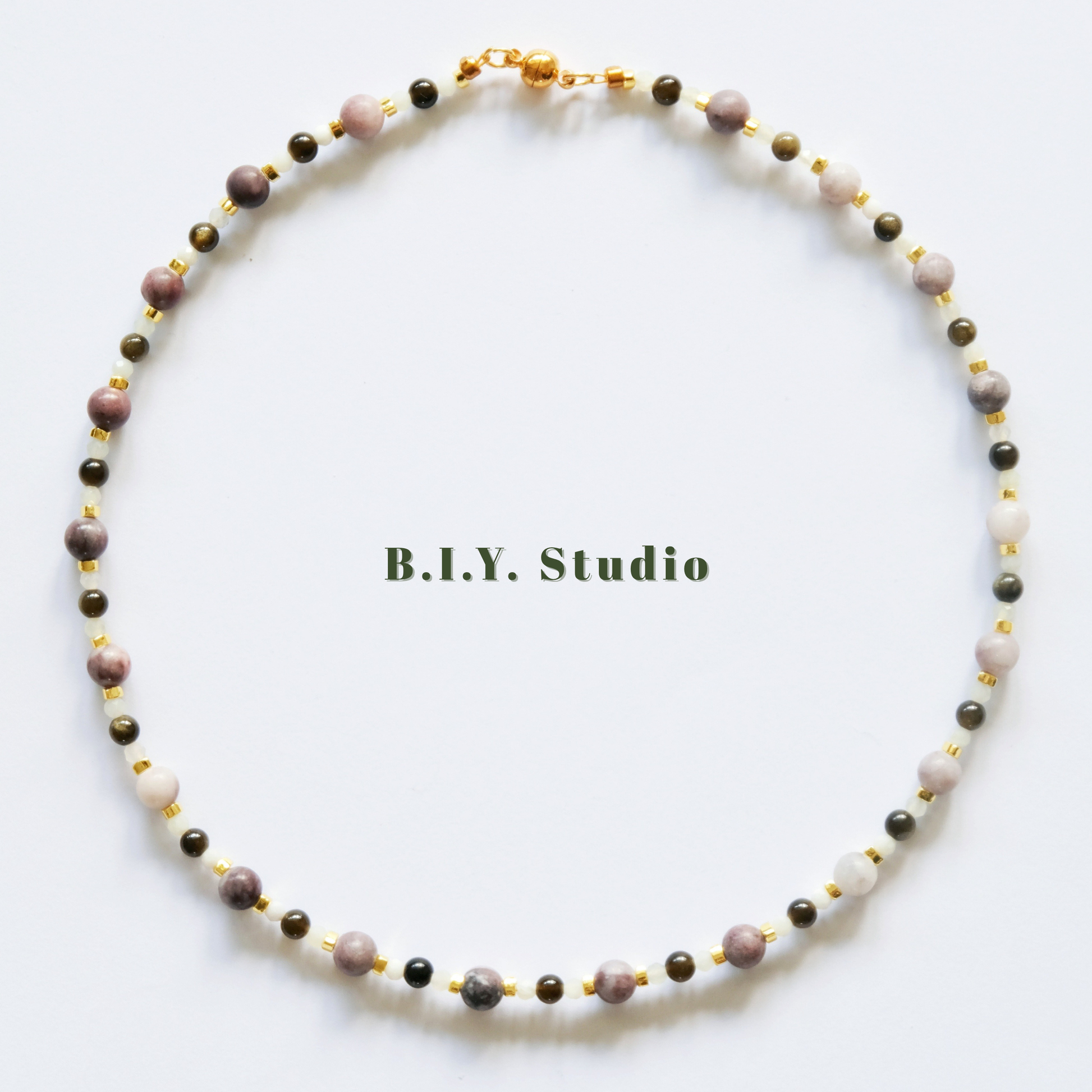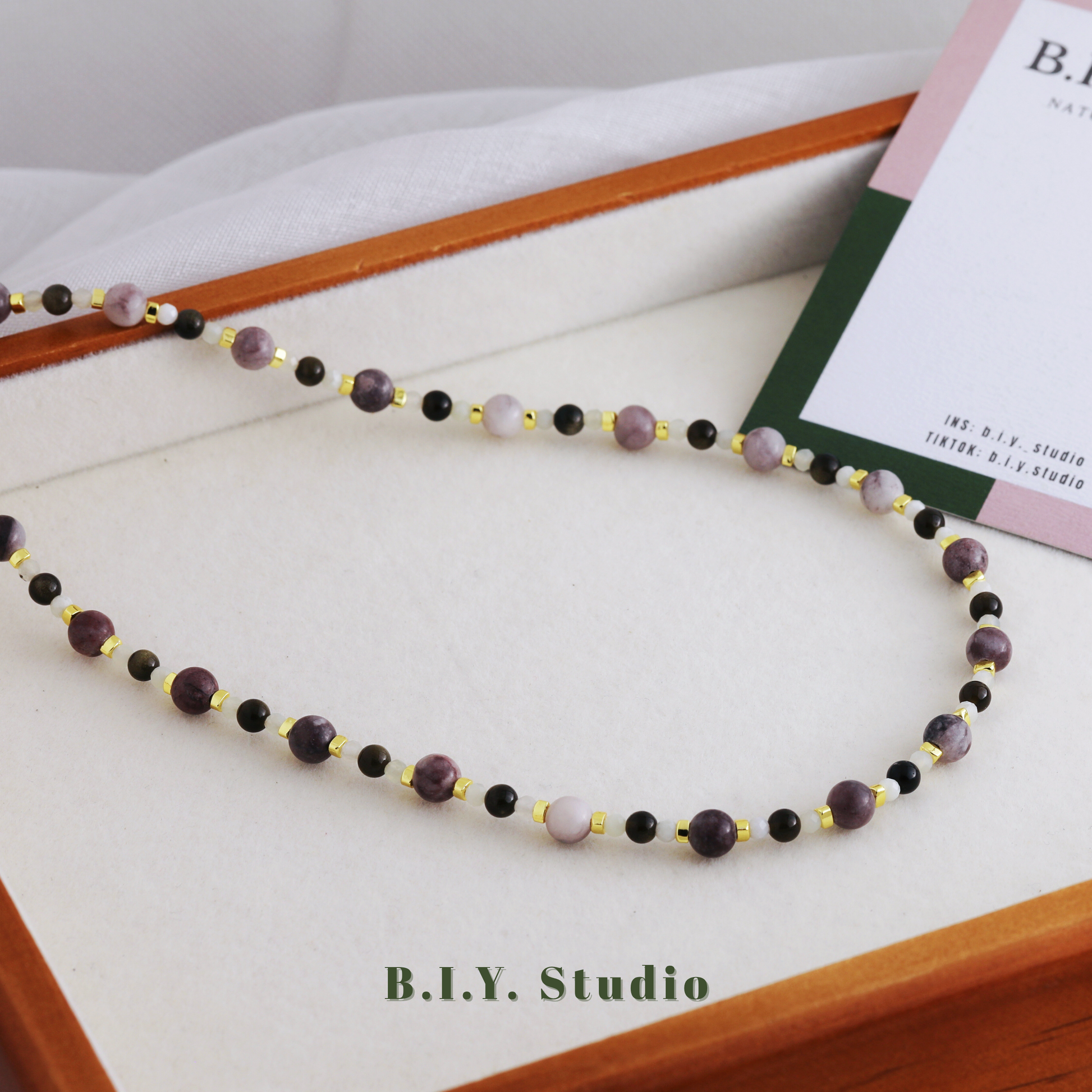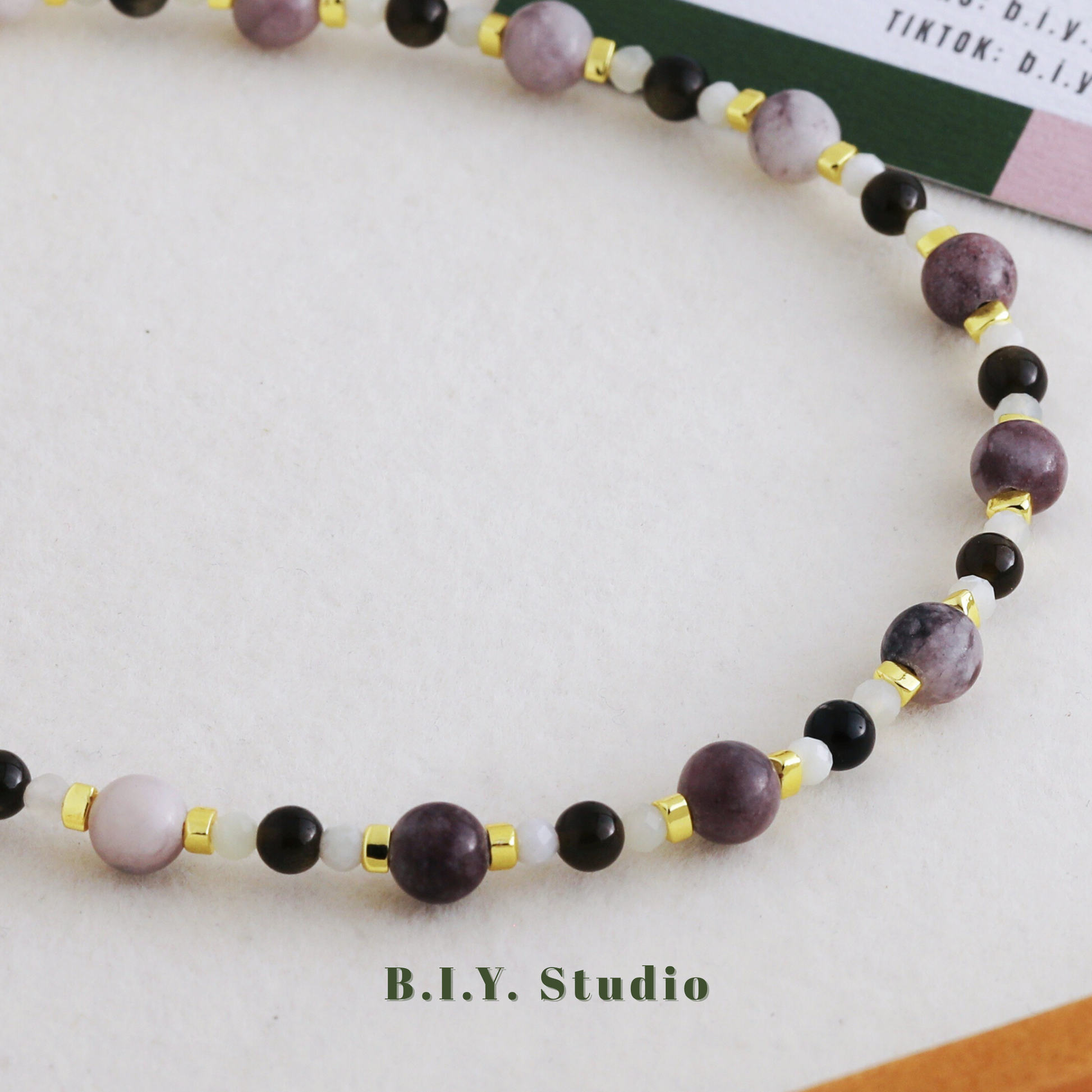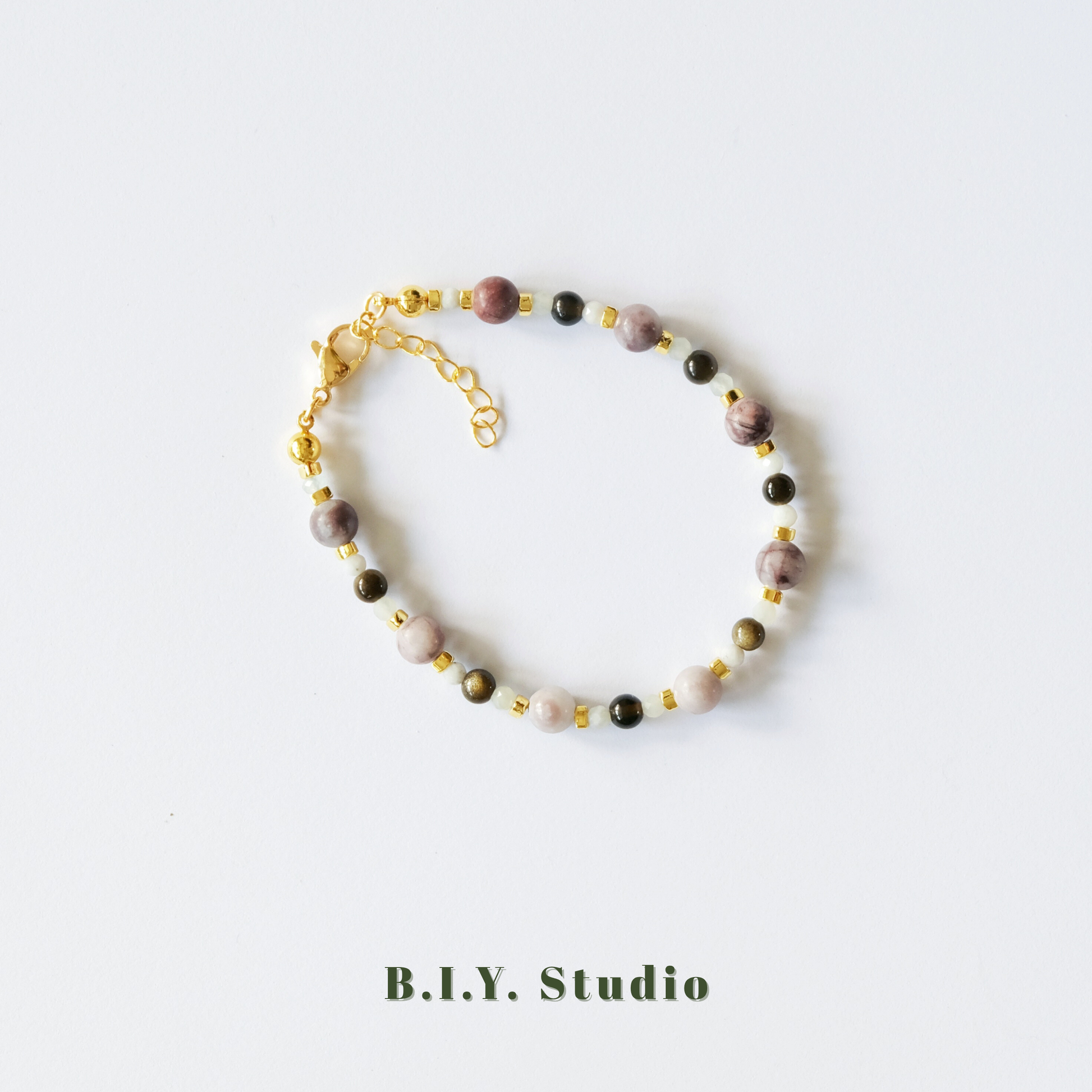 Materials: Gold Obsidian, Xiuyan Jade, Charoite, 18K Gold-plated Accessories