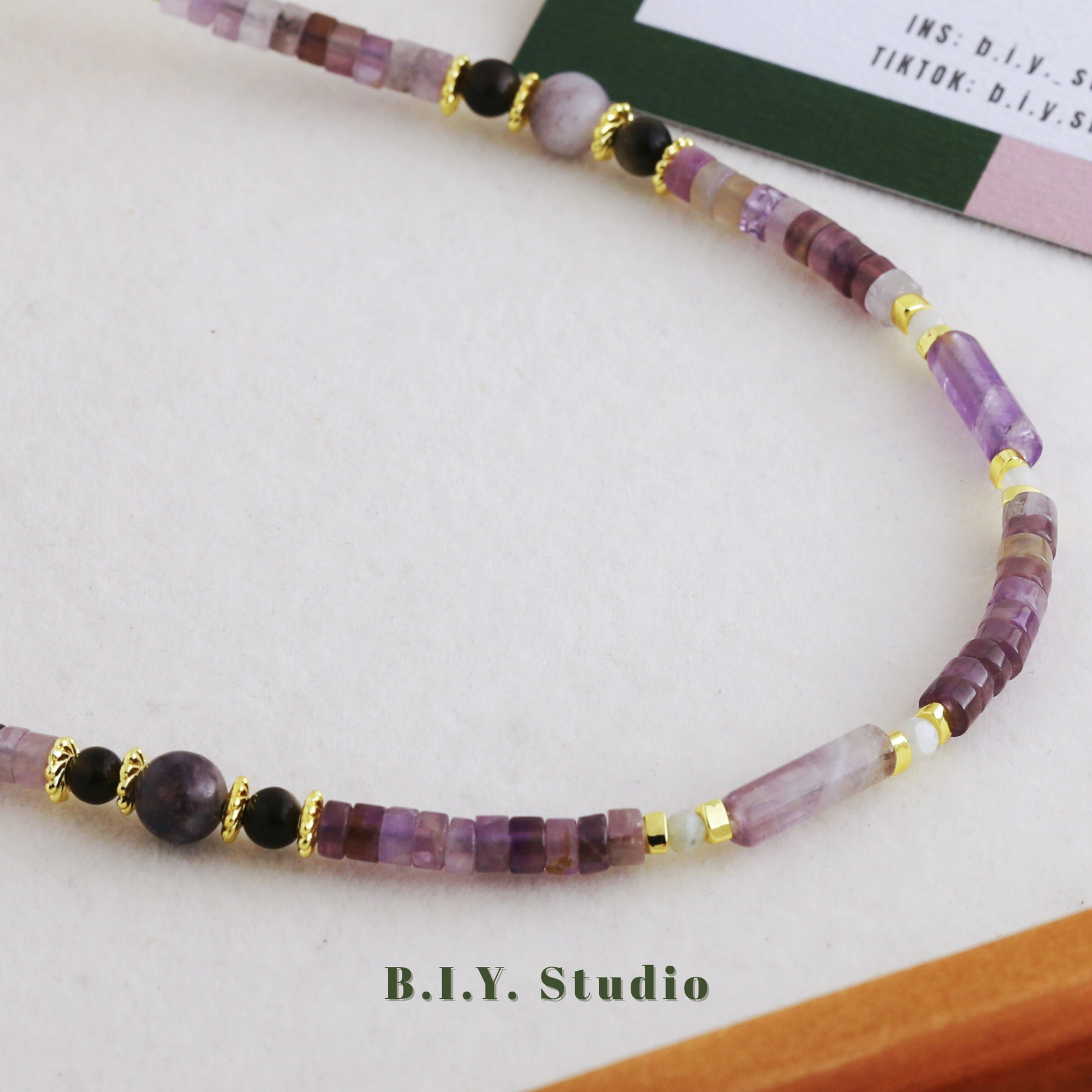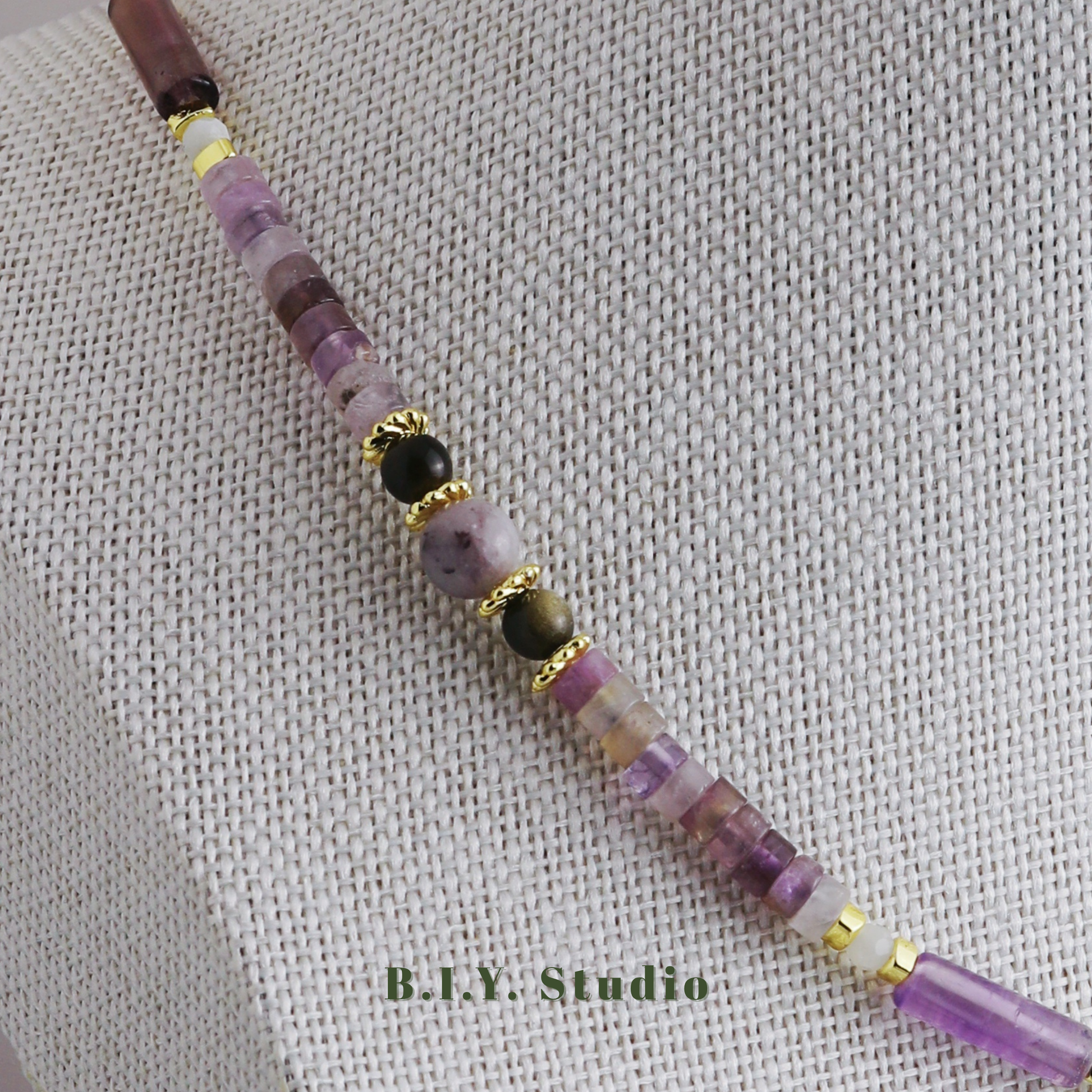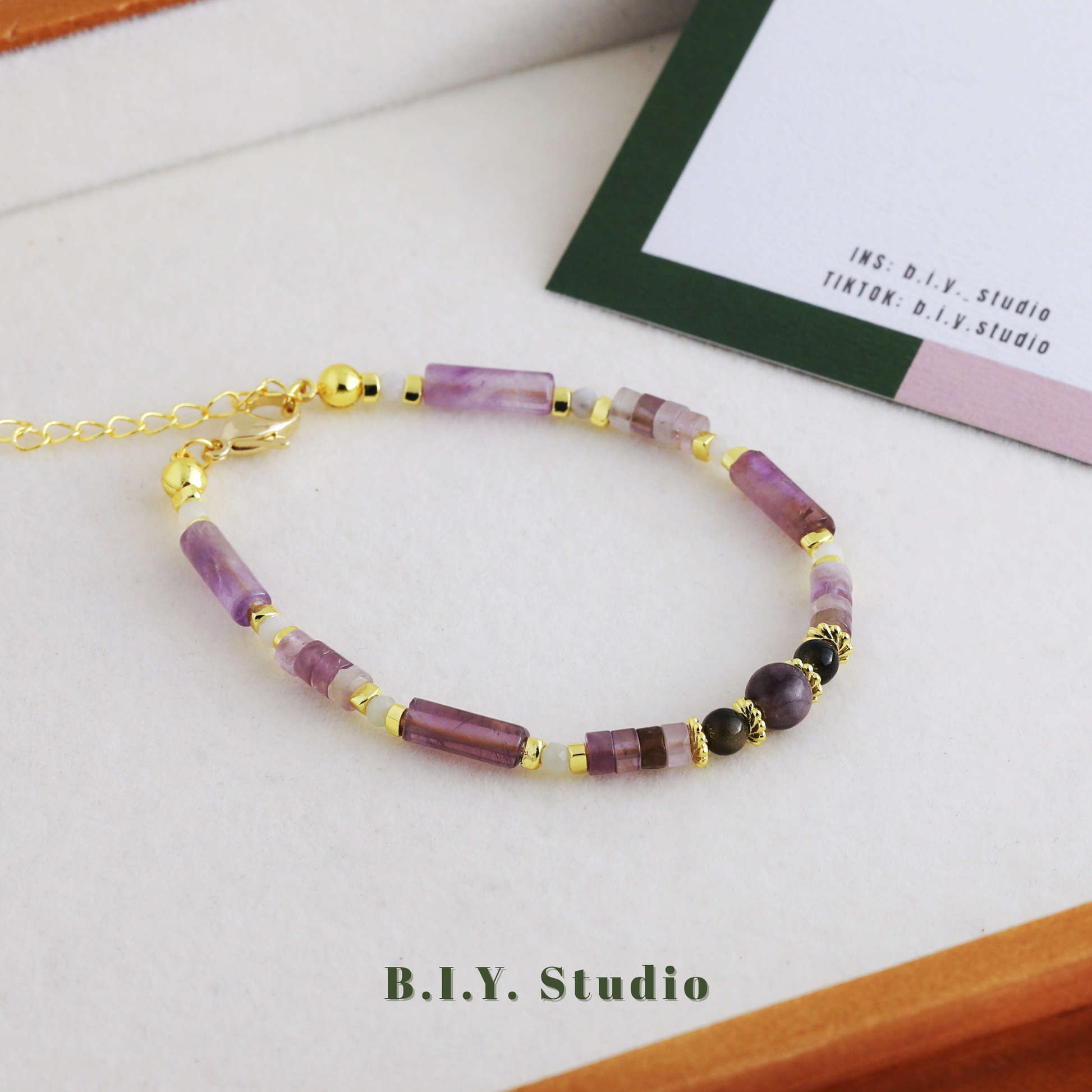 Materials: Amethyst, Gold Obsidian, Xiuyan Jade, Charoite, 18K Gold-plated Accessories