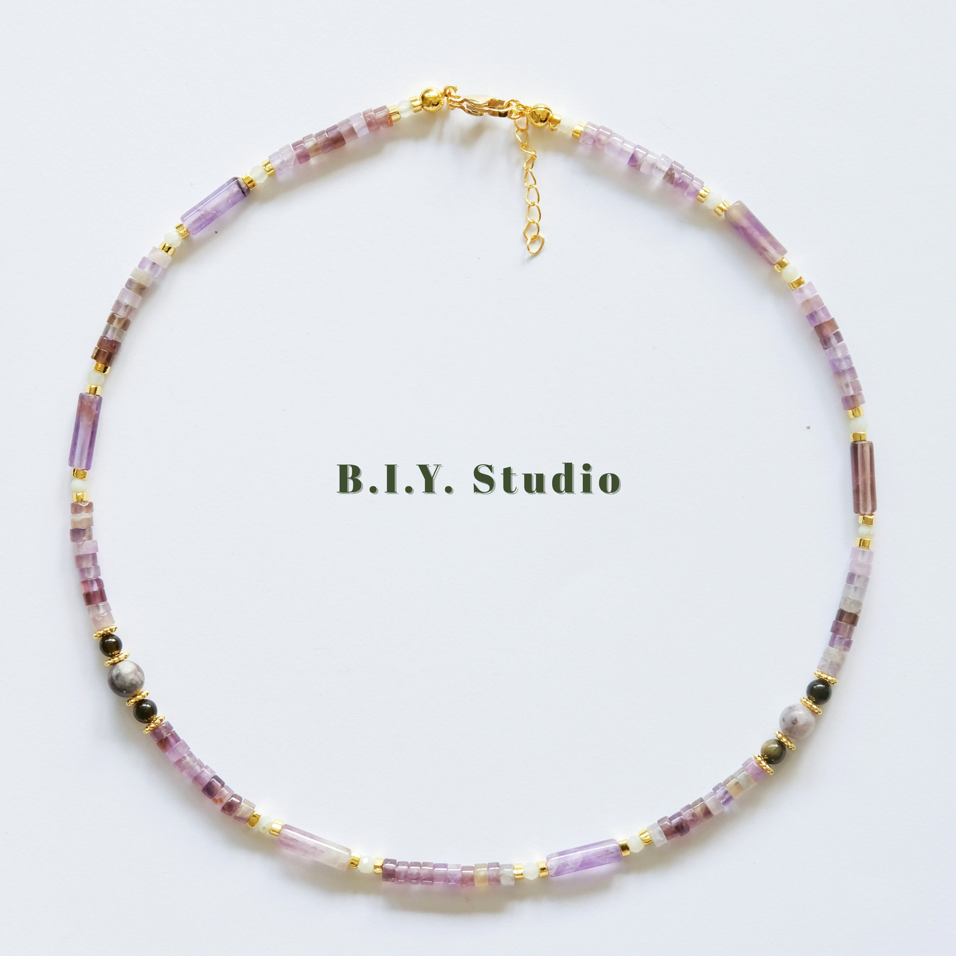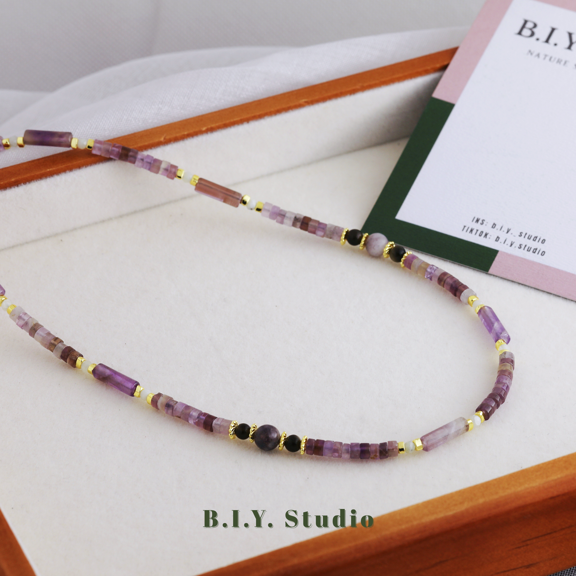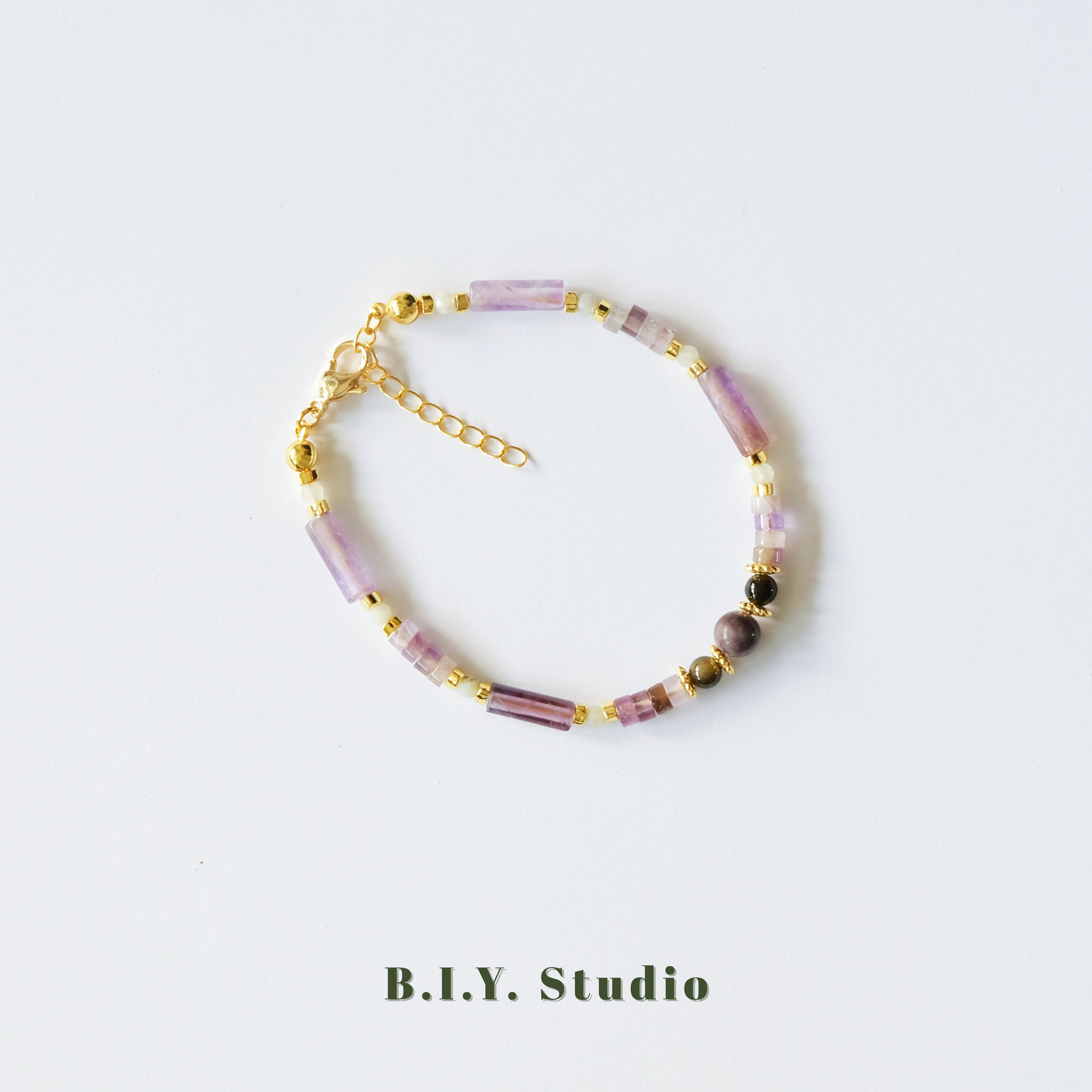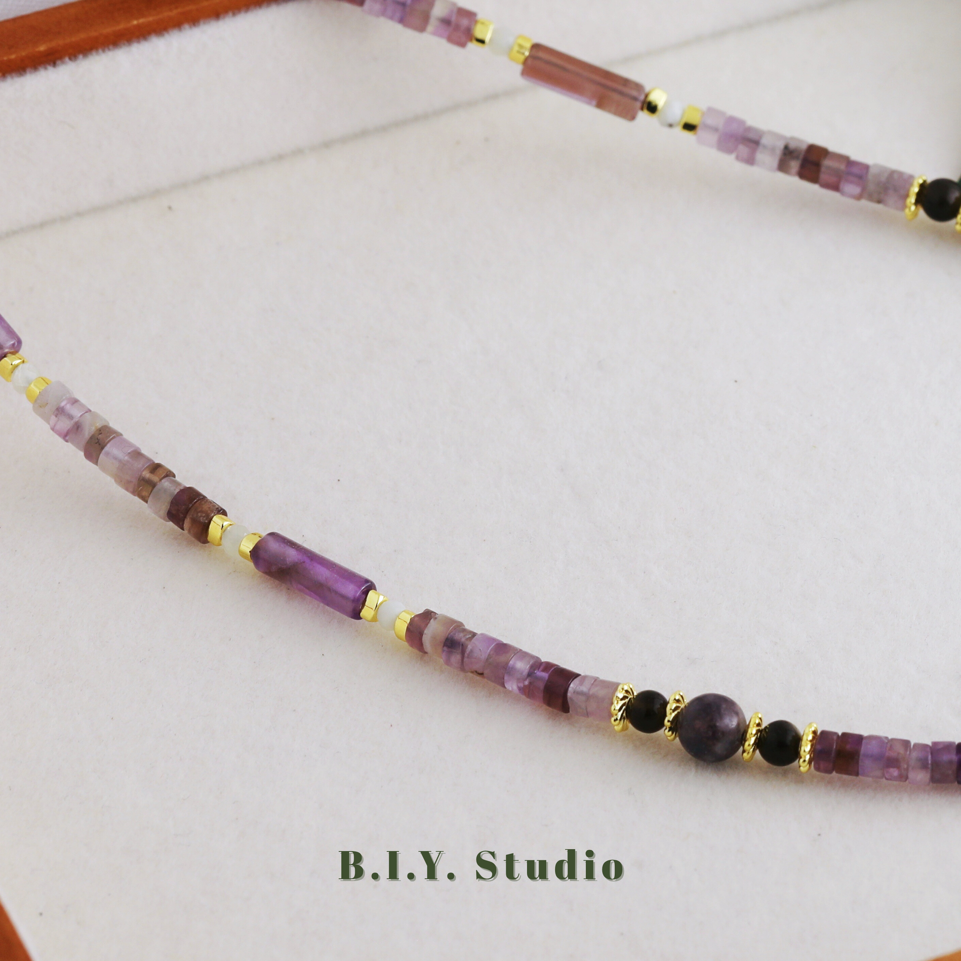 Materials: Amethyst, Gold Obsidian, Xiuyan Jade, Charoite, 18K Gold-plated Accessories