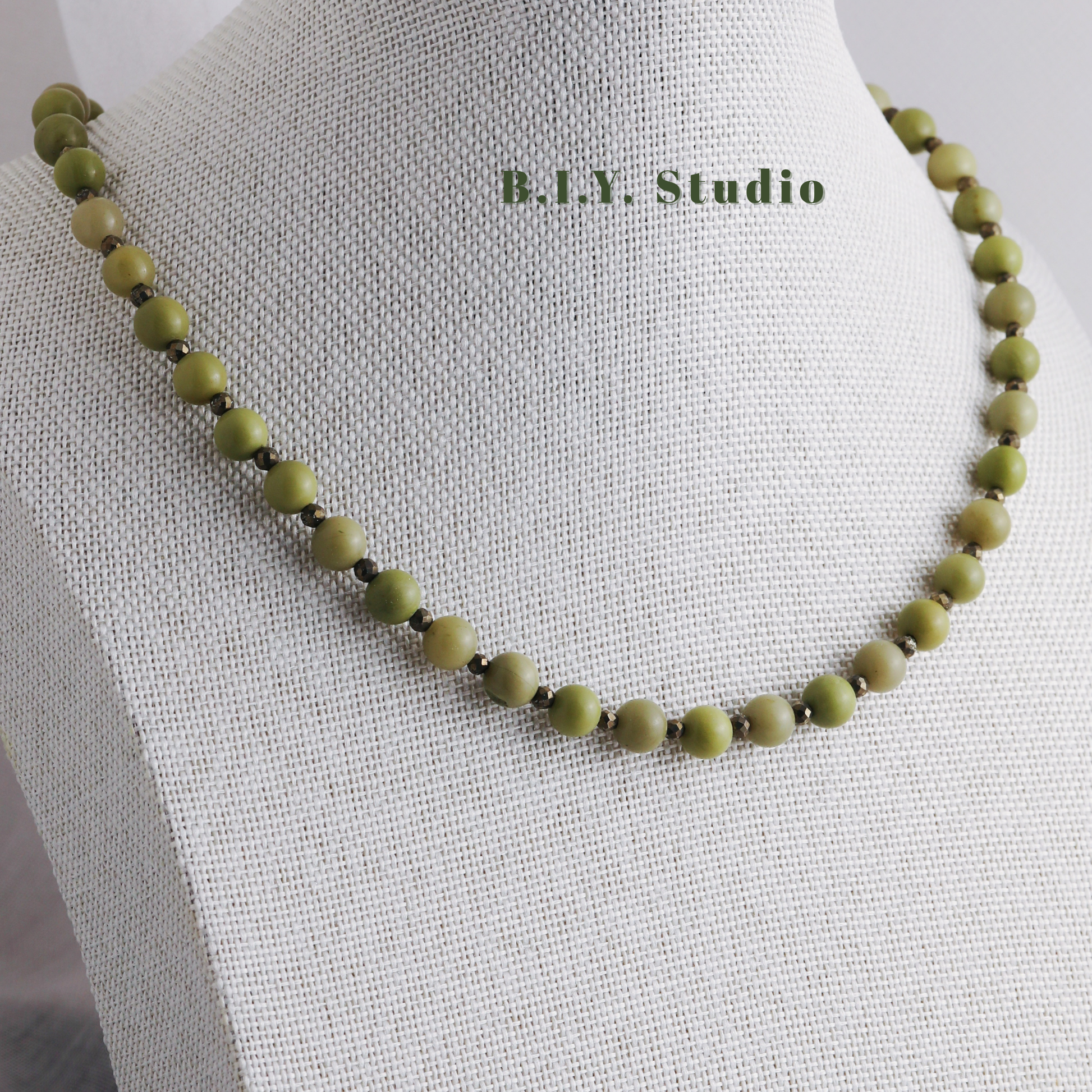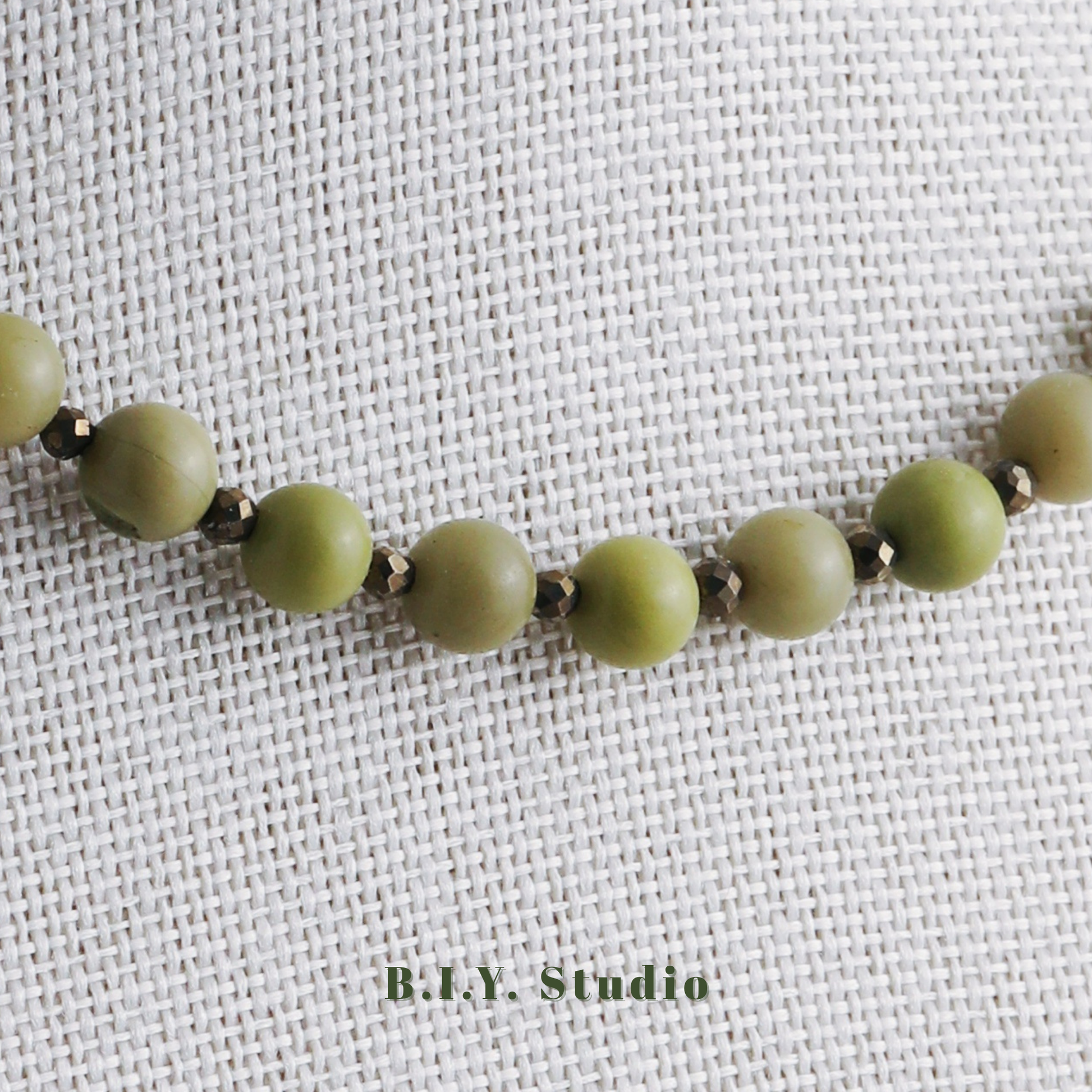 Deep within the heart of the forest lies a world of magic and mystery, where moss-covered rocks and babbling brooks create a haven of tranquility. The Moss Vein series captures the essence of this enchanted realm with a combination of Alashan agate, pyrite, and prehnite. Alashan agate, with its rich, earthy tones, represents the forest floor, while pyrite sparkles like sunlight filtering through the trees, adding a touch of magic. Prehnite, with its smooth, rounded shape, is like a drop of dew on a leaf, a symbol of purity and renewal. Wearing this series is like stepping into a fairy tale, a journey through a world where nature's beauty knows no bounds.