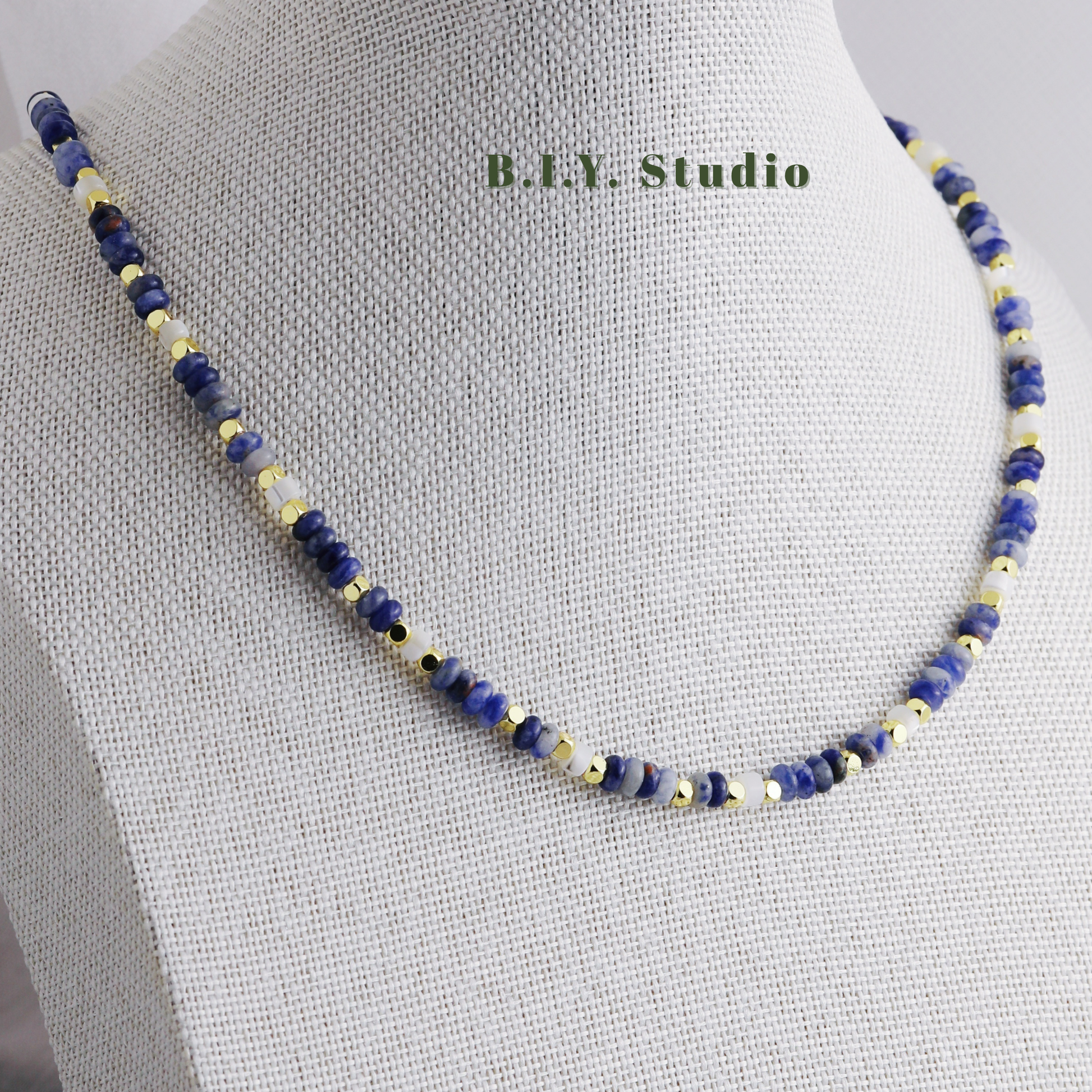Materials: Larimar, Shell beads, 18K Gold-plated Accessories