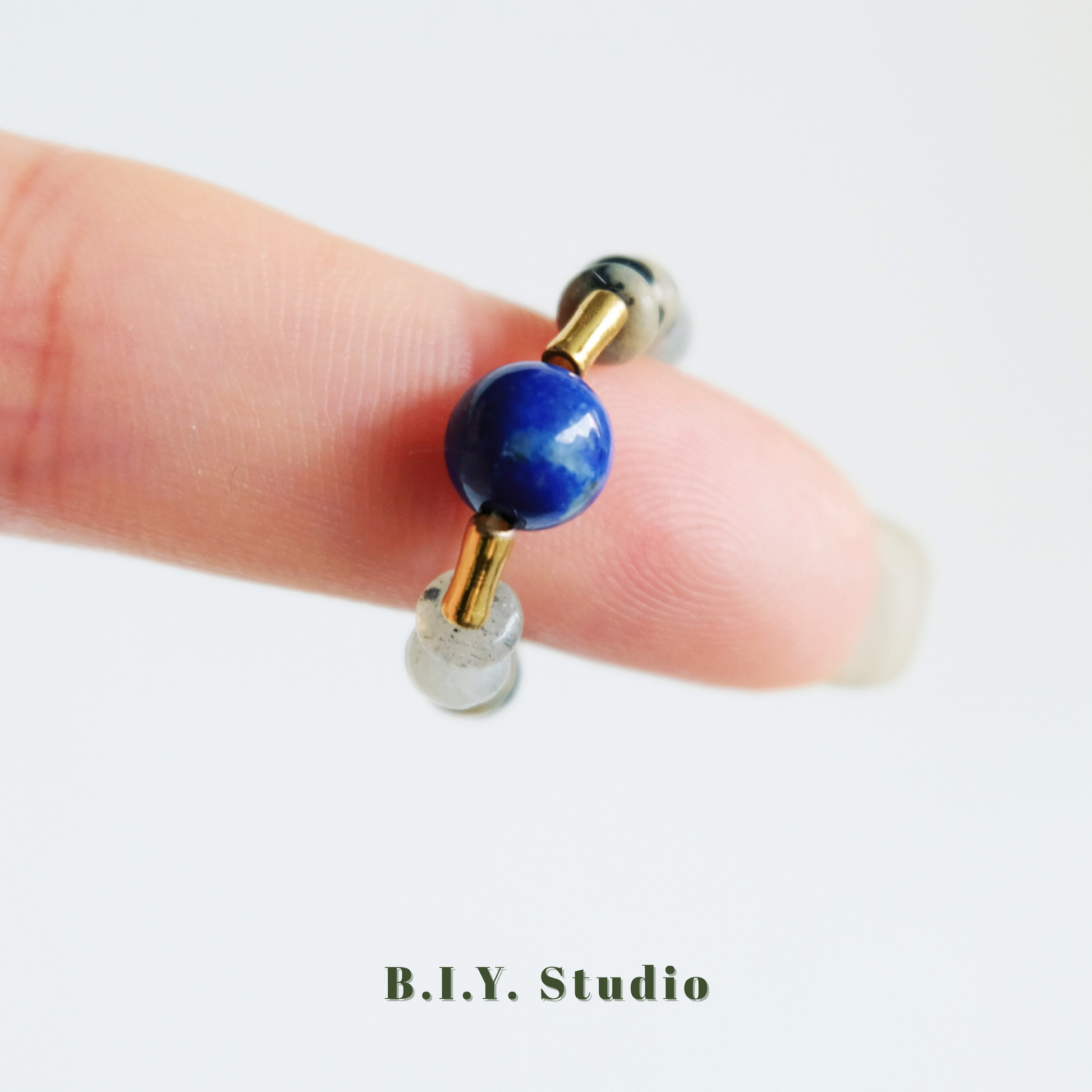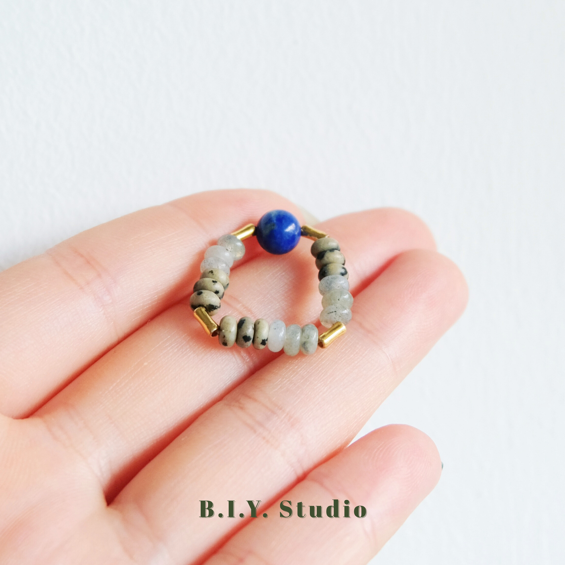Materials: Lapis Lazuli, White Flash Stone, Dalmatian Stone, 18K Gold-plated Accessories